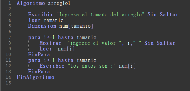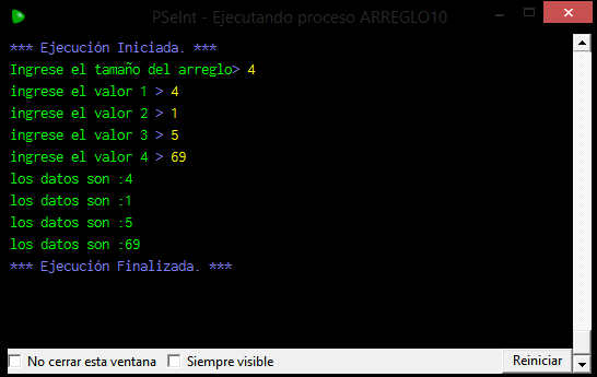 Programa que nos permita ingresar una dimensión y los valores que se van a mostrar en pantalla