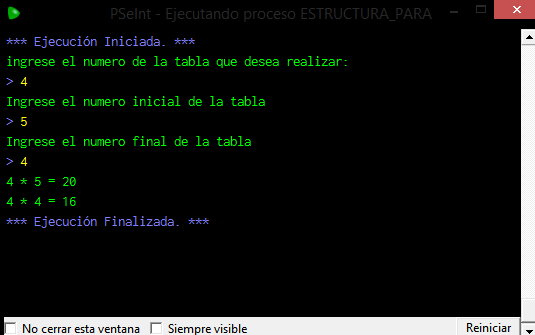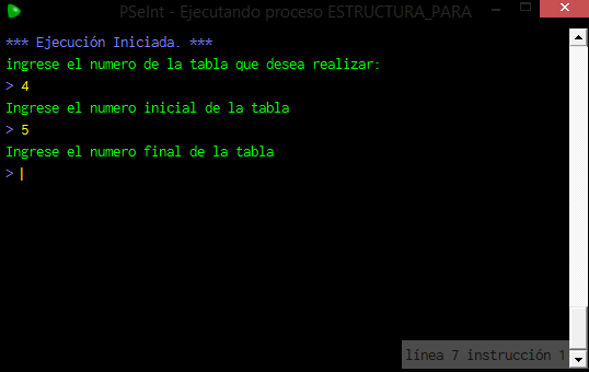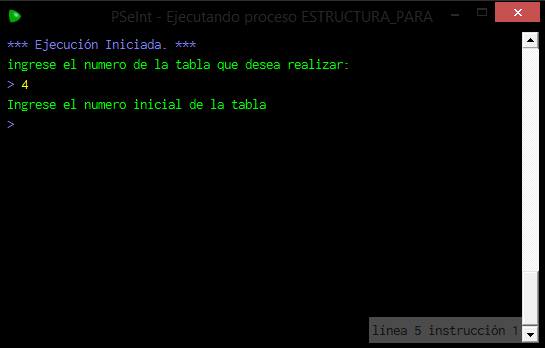 Aqui el programa nos pide que ingresemos el numero desde donde queremos que inicie la tabla