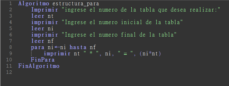 Y aquí nos pide el numero en el cual va finalizar la tabla, asi como muestra tambien el resultado