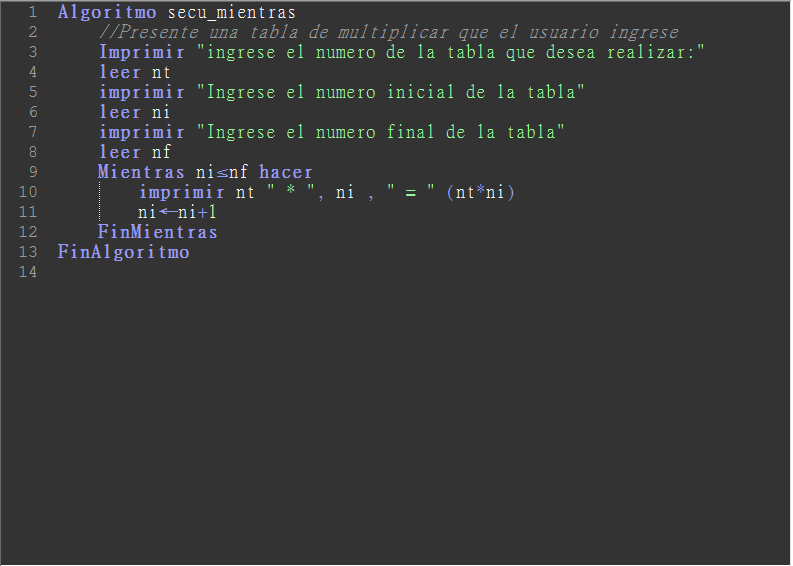 Aqui el programa nos pide que ingresemos el numero desde donde queremos que inicie la tabla