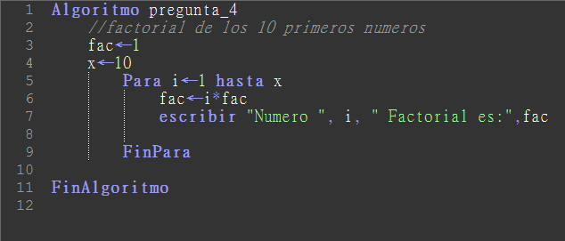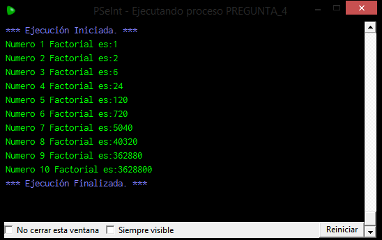 Programa que nos permita presentar por pantalla el factorial de los 10 primeros números: