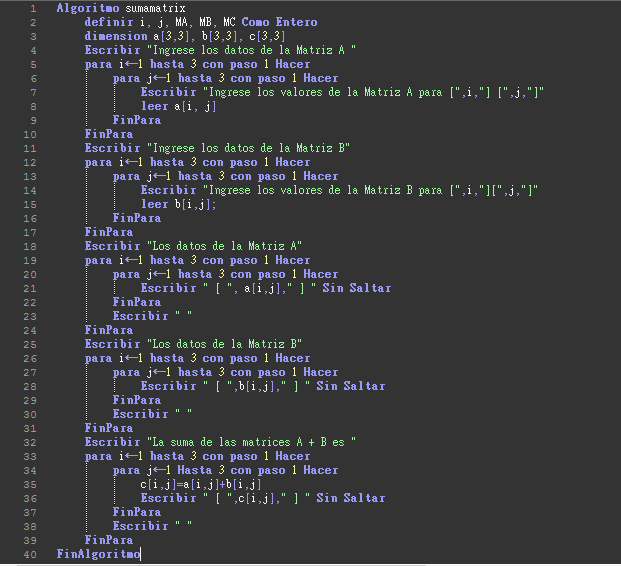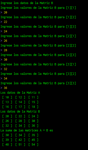 Crear un programa con arreglo que permita ingresar tanto el valor de filas y columnas de dos matrices, y sume esas dos matrices mostrando una tercera matriz con el resultado.