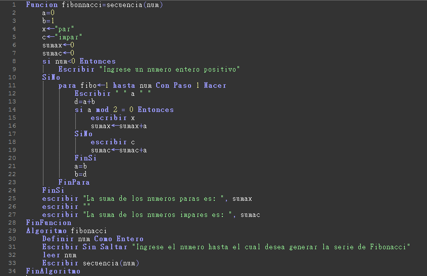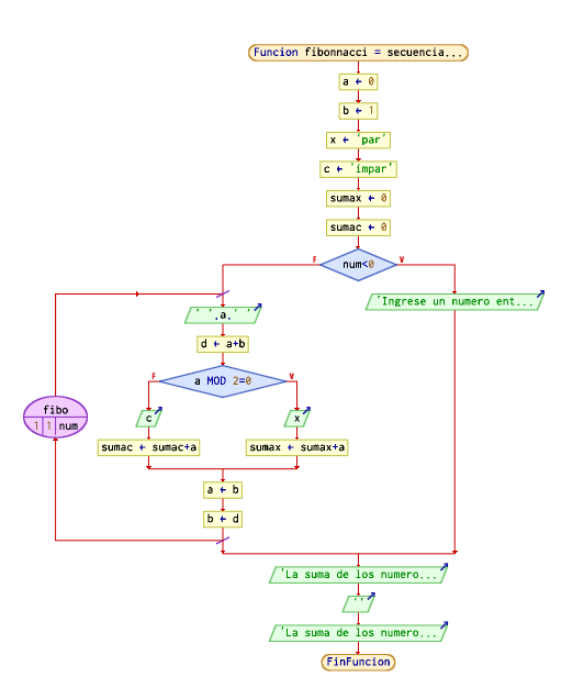 Crear un programa con función que presente por pantalla la sucesión de Fibonacci así como identifique los pares e impares y los sume.